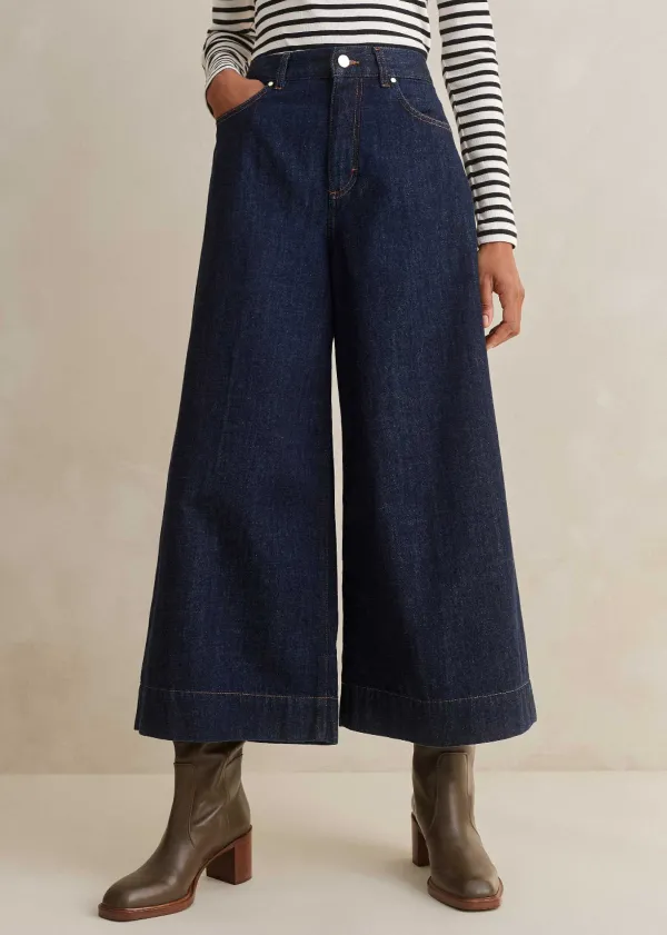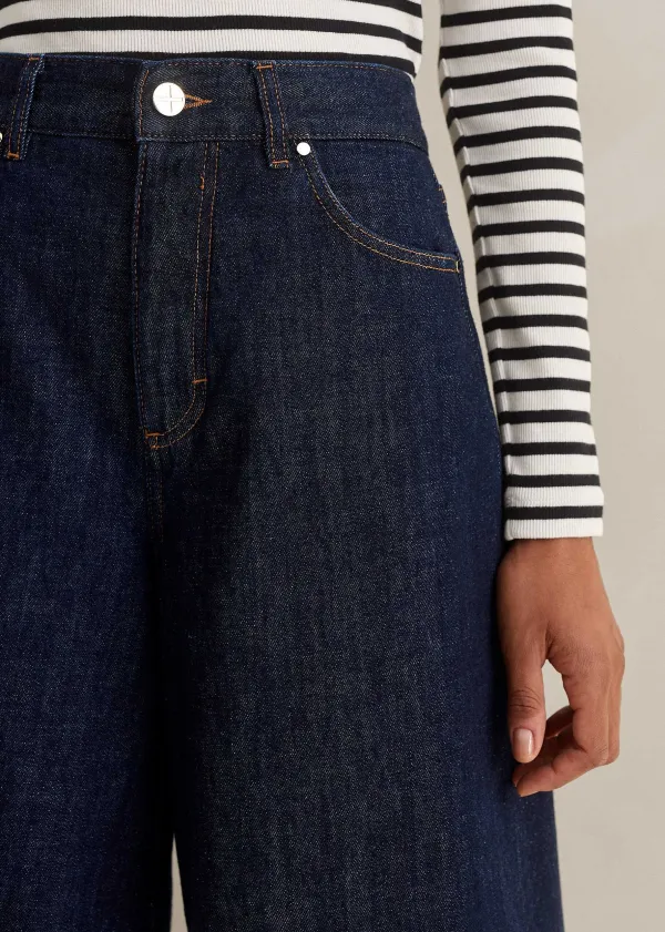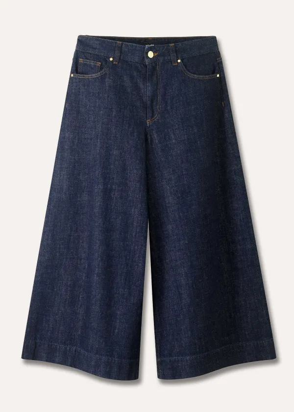 Introducing A New Silhouette To Your Edit Of Go-To Denim Pieces, This Made-In-Italy Culotte Features A Flattering High-Rise Waist And Extra Wide-Leg Silhouette. Joining The Undisrupted Dark Blue Wash, Contrast Stitching Highlights The Construction And Placement Of The Functional Pockets.